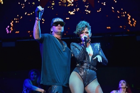 Певица Дженнифер Лопес феерически выступила в Мэдисон Сквер Гарден. На концерте в Нью-Йорке Лопес поразила зрителей своим сексуальным костюмом и зажигательными танцами. 45-звезда подчеркнула пышные формы блестящем боди с пикантным вырезом в зоне декольте. Дополнила образ Лопес ажурными чулками и черными замшевыми сапогами до колен.
