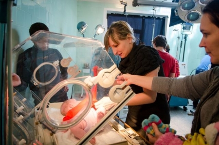 Телеканал "Украина" приступил к съемкам мелодрамы "Окно жизни". Сериал расскажет об историях спасения новорожденных малышей, подброшенных в так называемое окно жизни — специальный бокс в роддоме, оборудованный для тех, кто хочет анонимно оставить своего малыша. Первыми людьми, которые окружают новорожденных отказников теплом и заботой, становятся доктора и медсестры. А еще именно здесь, в детском стационаре, малыши смогут встретиться с приемными родителями, которые решили усыновить брошенного ребенка. Производством картины "Окно жизни" занимается компания FILM.UA. По сюжету действие разворачивается в детском стационаре перинатального центра. Чтобы добиться максимального соответствия на экране, съемки проходят в реальных больницах Киева. В одной из таких и побывала "Сегодня". "Руководство идет нам навстречу, — рассказал один из режиссеров проекта Максим Паперник. — Конечно, мы стараемся не причинять неудобств пациентам и врачам. Например, заранее утверждается день съемок сцен операций или родов. В операционной снимаем, только если там нет плановых операций и лишь по выходным. Съемочная группа соблюдает режим стерильности: и актеры, и операторы в халатах и бахилах". РОДИТЕЛИ БОЯТСЯ. Всего в эфир выйдет 24 серии, каждой истории посвящено по два эпизода. Главным героем каждого станет малыш-отказник. "Конечно, мы понимали, на что подписываемся и какие могут быть сложности в работе с младенцами, — говорит Паперник. — Самое главное — если ребенок в настроении, надо постараться снять сцену максимально быстро. Ведь если в кадре ребенок расплачется, это уже производственный брак по звуку. Так что мы просто ждем, когда маленький актер успокоится, покушает или поспит, и продолжаем".