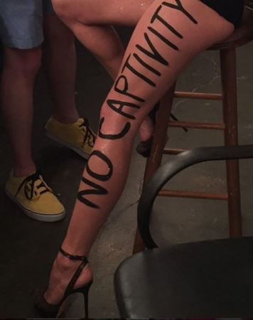 Американская актриса Памела Андерсон выступила с плакатом "Спасите китов" вышла на сцену Лос-Анджелеса во время выступления эпатажной певицы Майли Сайрус. Об этом написала сама актриса в Instagram, где показала свои расписанные ноги в коротких шортах. Известно, что 48-летняя Андерсон, активно занимающаяся защитой прав животных, присоединилась к Сайрус на сцене во время исполнения песни We Can't Stop. На актрисе были короткие черные шорты и черная майка. Тем временем полуголая Майли Сайрус устроила развратный концерт. 23-летняя девушка тогда несколько раз за вечер меняла наряды.