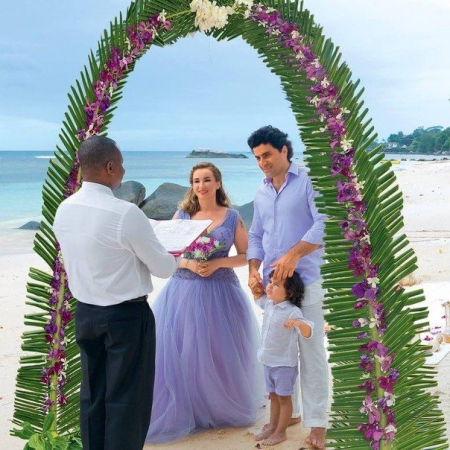 Телеведущая Анфиса Чехова вышла замуж за своего гражданского супруга и отца ее ребенка Гурама Баблишвили 22 июня на диком безлюдном пляже Сейшельских островов. Главным и единственным гостем праздника стал трехлетний сын супругов Соломон.