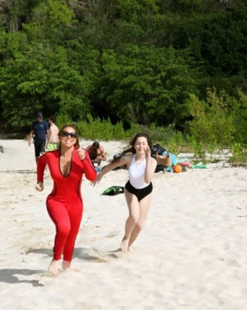 Американская певица Мэрайя Кери весело проводит время со своими детьми на море. Своими снимками она щедро делится со своими поклонниками в Instagram. На фото 45-летняя знаменитость бегает по пляжу со своими дочками, облачившись в красный обтягивающий комбинезон с очень глубоким декольте. На другом снимке певица показа свои аппетитные формы в золотистом бикини и платком на бедрах. Фотографии певицы с солнечного отдыха пришлись по душе ее подписчикам, которые оценили их в более чем 35 тысяч лайков каждая. Ранее Мэрайя Кэри в комбинезоне порезвилась в снегу. Рождественские праздники певица проведет в заснеженном Аспене вместе со своим возлюбленным.