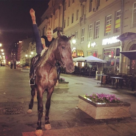 Сегодня Анастасия Волочкова отмечает юбилей. Балерине исполняется 40 лет. Артистка и большая поклонница микро-бикини не задумывается о возрасте и при каждом удобном случаи демонстрирует свой фирменный шпагат в самых неожиданных местах – в морской пучине, ресторане и даже на коне.