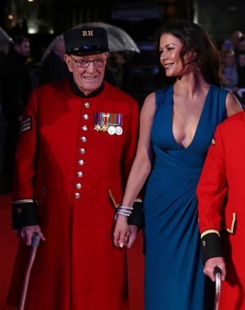 В Лондоне состоялась мировая премьера комедии Оливера Паркера "Папашина армия". 46-летняя актриса Кэтрин Зета-Джонс на красной дорожке приковала к себе особое внимание. Актриса выбрала для выхода в свет откровенное платье с глубоким декольте и высоким разрезом от Elie Saab. Из-за ветра и дождя супруге Майкла Дугласа все время приходились следить за нарядом. Зета-Джонс продемонстрировала неувядающую красоту и стройные ноги.В фильме "Папашина армия" Кэтрин Зета-Джонс играет журналиста Роуз Уинтерс.