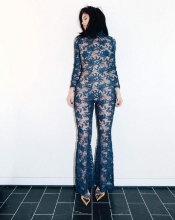 Самая младшая из сестер семейства Кардашьян пришла на модный показ, где весело проводила время со своими друзьями, в прозрачном комбинезоне. Девушка похвасталась своим смелым нарядов в Instagram. На Кайли красуется гипюровый комбинезон темно-серого цвета, который был надет на голое тело. Образ завершают туфли на шпильке золотистого цвета и объемная прическа. Такой образ молодой девушки пришелся по душе ее поклонникам, которые завалили ее хвалебными комментариями и поставили по 580 тысяч лайков за каждый снимок. Тем временем Хлое Кардашьян полностью разделась ради красивой фотосессии в бассейне.