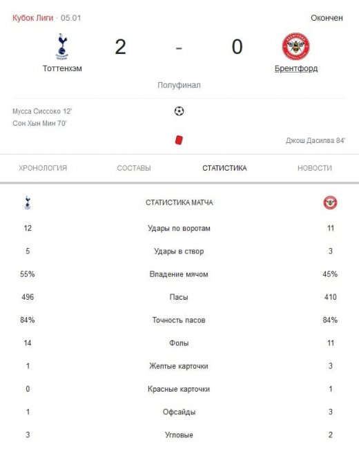 Несмотря на то, что «шпоры» играли с представителем Чемпионшипа, поединок был приблизительно равным. Интрига в матче оставалась до удаления игрока «Брентфорда».