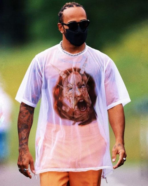 Источник фото: Instagram Льюиса ХэмилтонаПрозрачная футболка с рисунком.